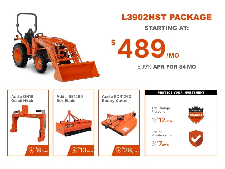0% APR available or save up to $4,500 on your new Kubota TLB Series!