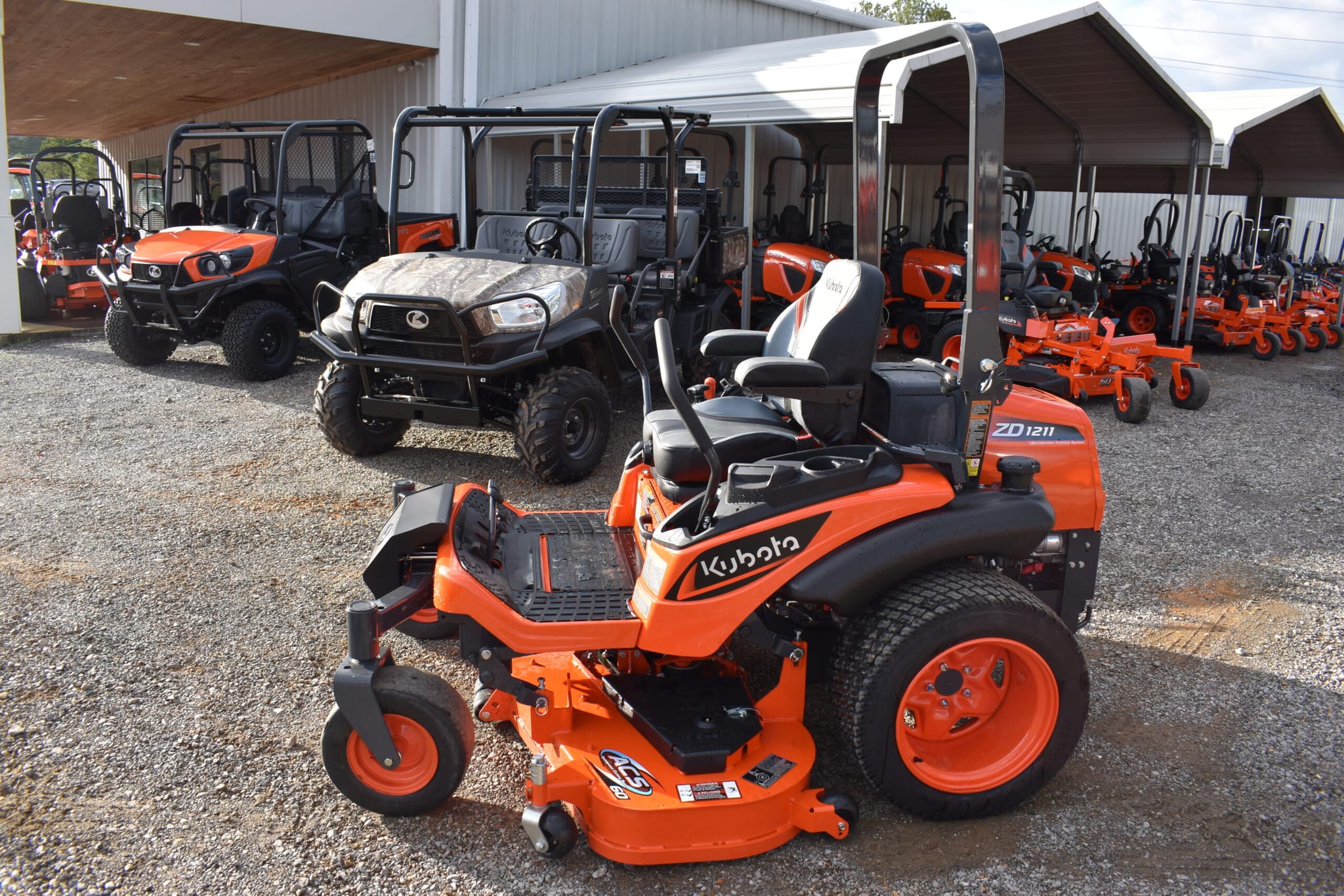 The Kubota ZD1211 has a 24.8 HP Kubota diesel engine with a 60″ hydraulic deck.